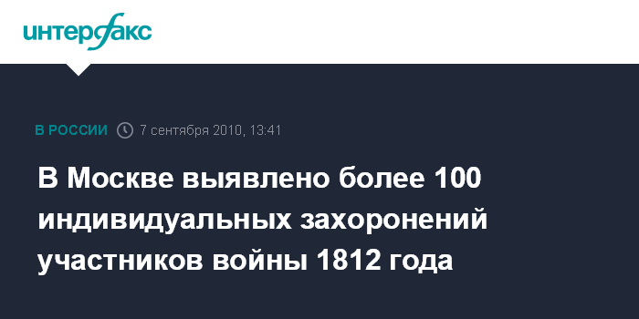 В Москве выявлено более 100 индивидуальных захоронений участников войны 1812 года