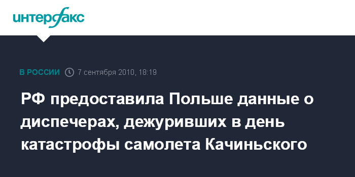 РФ предоставила Польше данные о диспечерах, дежуривших в день катастрофы самолета Качиньского