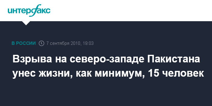 Взрыва на северо-западе Пакистана унес жизни, как минимум, 15 человек