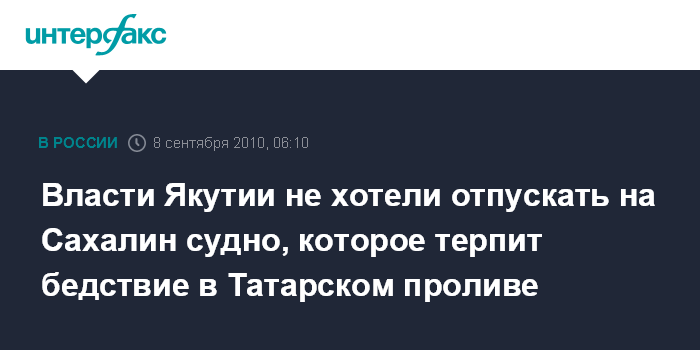 Власти Якутии не хотели отпускать на Сахалин судно, которое терпит бедствие в Татарском проливе