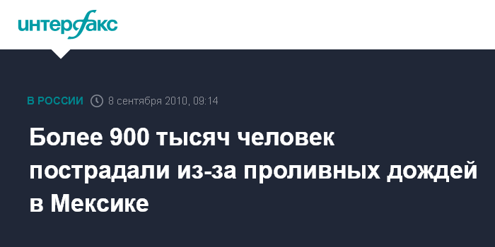 Мехико. 8 сентября. INTERFAX.RU - Семь человек погибли и около 914 тыс. понесли ущерб из-за сильнейших проливных дождей в Мексике, сообщают местные власти.