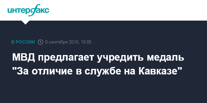 В положении о новой медали отмечается, что ею награждаются сотрудники органов внутренних дел РФ и военнослужащие внутренних войск МВД, "награжденные нагрудным знаком МВД "За службу на Кавказе" за мужество, отвагу, самоотверженность, инициативу и высокие результаты в выполнении оперативно-служебных и служебно-боевых задач в северокавказском регионе".
