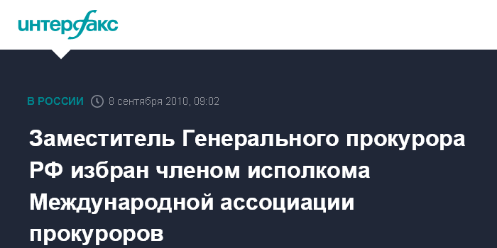Заместитель Генерального прокурора РФ избран членом исполкома Международной ассоциации прокуроров
