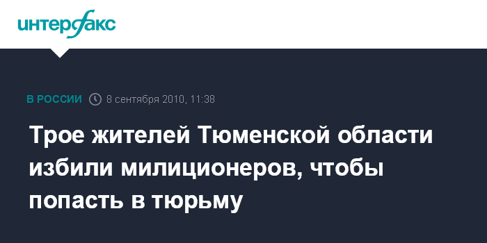 Трое жителей Тюменской области избили милиционеров, чтобы попасть в тюрьму
