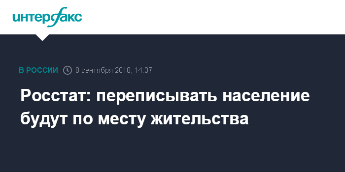 Санкт-Петербург. 8 сентября. INTERFAX.RU - В рамках переписи населения РФ людей будут опрашивать по месту жительства, а не регистрации, сообщил руководитель территориального органа федеральной службы государственной статистики (Росстат) по Петербургу и Ленинградской области Олег Никифоров на пресс-конференции в среду.