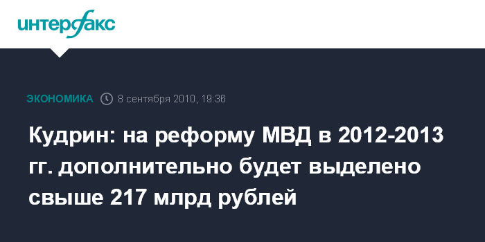 Кудрин: на реформу МВД в 2012-2013 гг. дополнительно будет выделено свыше 217 млрд рублей