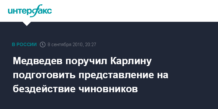 Медведев поручил Карлину подготовить представление на бездействие чиновников