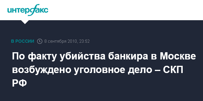 По факту убийства банкира в Москве возбуждено уголовное дело – СКП РФ