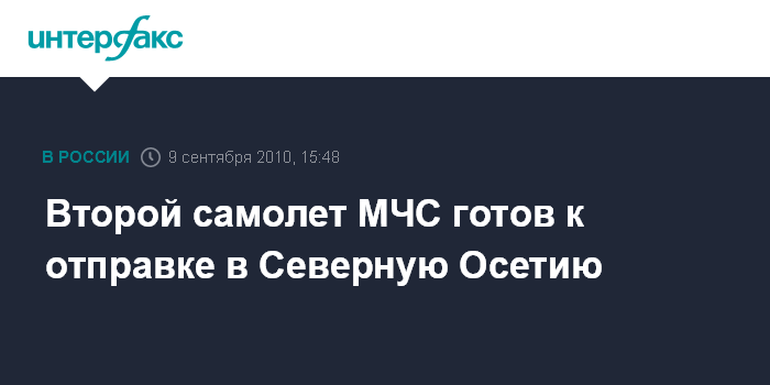 Москва. 9 сентября. INTERFAX.RU - К вылету во Владикавказ готовится второй самолет МЧС, доложил глава министерства Сергей Шойгу президенту РФ Дмитрию Медведеву.