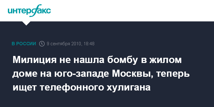Милиция не нашла бомбу в жилом доме на юго-западе Москвы, теперь ищет телефонного хулигана