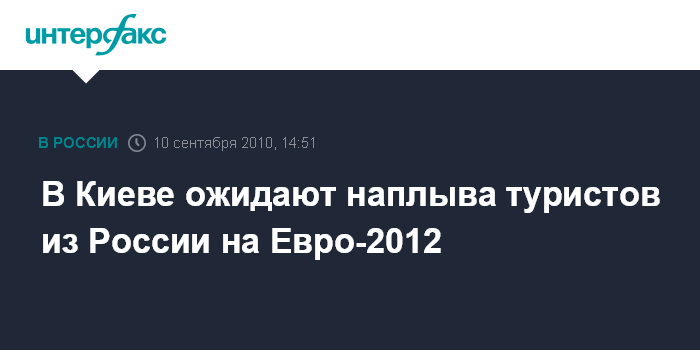Киев. 10 сентября. INTERFAX.RU - Не менее половины от общего количества туристов, которые посетят Украину в рамках проведения финальной части чемпионата Европы по футболу "Евро-2012", будут из России, предполагает вице-премьер Борис Колесников.