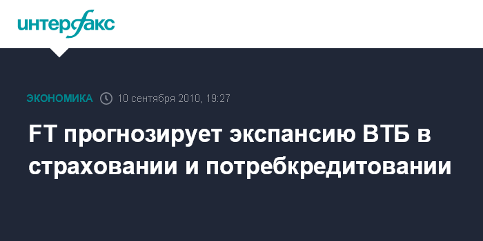 FT прогнозирует экспансию ВТБ в страховании и потребкредитовании