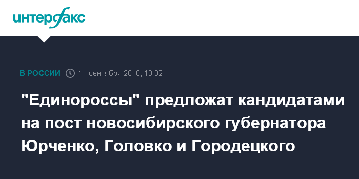 "Единороссы" предложат кандидатами на пост новосибирского губернатора Юрченко, Головко и Городецкого