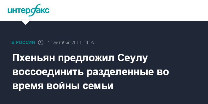 Пхеньян предложил Сеулу воссоединить разделенные во время войны семьи