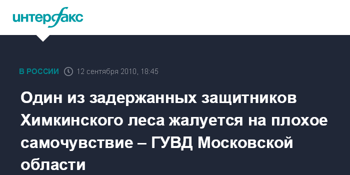 Один из задержанных защитников Химкинского леса жалуется на плохое самочувствие – ГУВД Московской области
