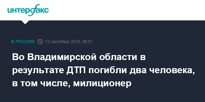 По его словам, в результате ДТП от полученных травм скончался сержант милиции, находившийся за рулем машины, а также пассажир автомобиля - житель Владимирской области.