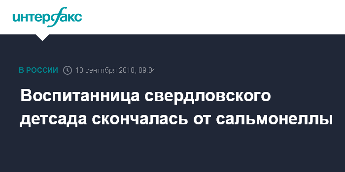 Екатеринбург 13 сентября. INTERFAX.RU - Источником сальмонеллеза, которым заразились 40 воспитанников детсада "Ладушка" в Карпинске (Свердловская область), из которых одна девочка умерла, стала говядина, использованная для приготовления зраз.