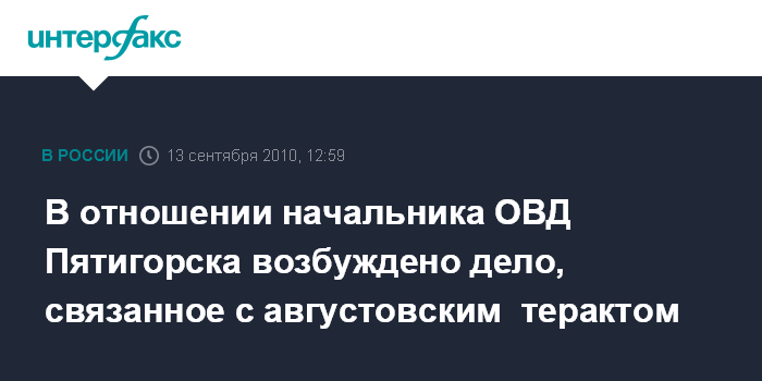 В отношении начальника ОВД Пятигорска возбуждено дело, связанное с августовским терактом