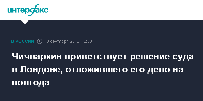 Москва. 13 сентября. INTERFAX.RU- Экс-владелец компании "Евросеть" Евгений Чичваркин доволен решением лондонского суда, который перенес на 21 марта слушания дела о его экстрадиции из Великобритании.