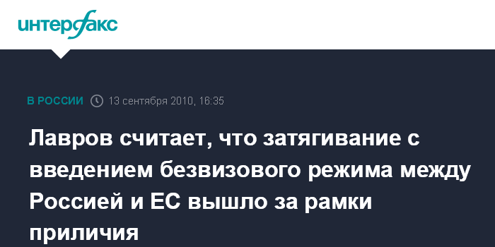 Лавров считает, что затягивание с введением безвизового режима между Россией и ЕС вышло за рамки приличия