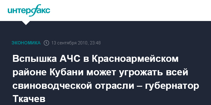 "Пока нет результатов анализов по другим хозяйствам и ЛПХ района, но, я уверен, что это как раз тот случай, когда беда не приходит одна. В угрожаемой зоне - весь район. Несмотря на все меры, которые принимал край, чтобы не допустить завоза опасной инфекции из соседних регионов, заражение произошло. И, в первую очередь, эффективность работы по предупреждению чумы сводит на нет банальный человеческий фактор. Элементарная халатность, пренебрежение нормами санитарной безопасности. Очаг чумы свиней появился на крупном предприятии, где животные находятся на закрытом содержании", - заявил А.Ткачев на мероприятии, посвященном вспышке АЧС.