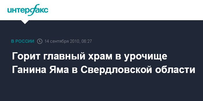 Екатеринбург. 14 сентября. ИНТЕРФАКС-УРАЛ - В Свердловской области во вторник утром начался пожар в урочище Ганина Яма, расположенном на месте обнаружения останков царской семьи.