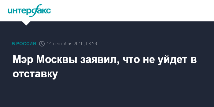 Москва. 14 сентября. INTERFAX.RU - Мэр Москвы Юрий Лужков заявил, что в отставку не уйдет.