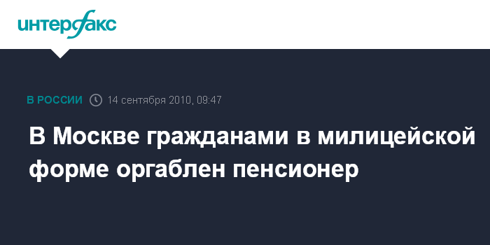 В Москве гражданами в милицейской форме оргаблен пенсионер