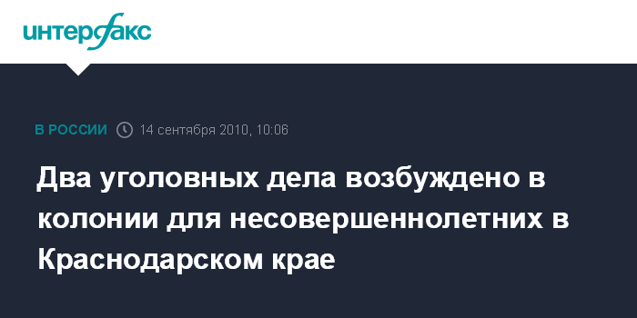 Два уголовных дела возбуждено в колонии для несовершеннолетних в Краснодарском крае