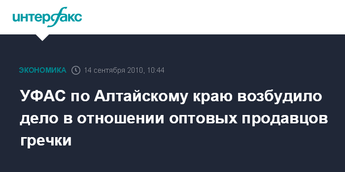 УФАС совместно с сотрудниками прокуратуры Алтайского края провели анализ динамики цен на гречневую крупу на оптовом и розничном рынках. Комиссией было установлено, что за июль и август текущего года рост потребительских цен на гречку составил 44,2%. Динамика роста потребительских цен на крупу соответствовала динамике отпускных цен производителей. Но по отдельным компаниям был отмечен значительный рост цен на гречку, превышающий рост цен производителей зерна.