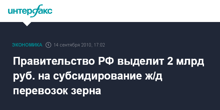 "Мною подписано постановление по субсидированию железнодорожных перевозок для того чтобы обеспечить перевозку зерновых культур оттуда, где они уродились в этом году, прежде всего из южных, сибирских регионов страны, в те регионы, где они больше всего нужны сегодня. Мы на эти цели выделяем дополнительно 2 млрд рублей", - сказал он.