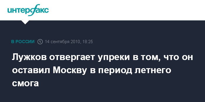 Лужков отвергает упреки в том, что он оставил Москву в период летнего смога