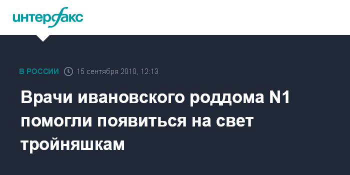 Иваново. 15 сентября. INTERFAX.RU - В Ивановском родильном доме N1 в среду родилась первая за последние 25 лет тройня - два мальчика и девочка.