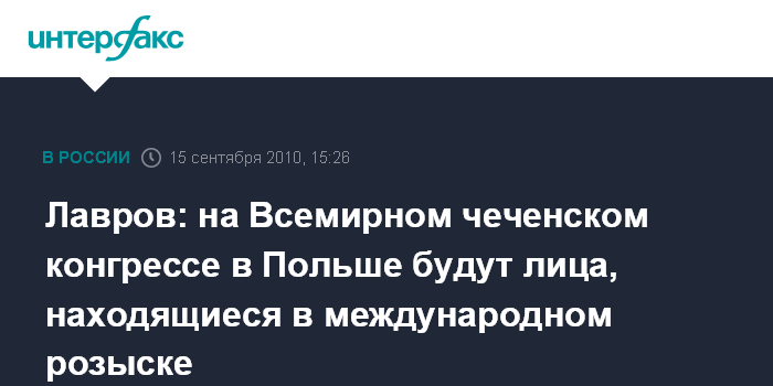 Лавров: на Всемирном чеченском конгрессе в Польше будут лица, находящиеся в международном розыске