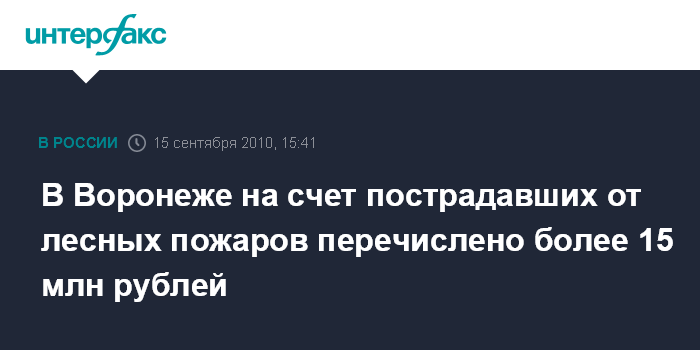 В Воронеже на счет пострадавших от лесных пожаров перечислено более 15 млн рублей
