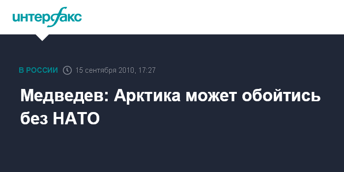 Мурманск. 15 сентября. INTERFAX.RU - Президент РФ Дмитрий Медведев заявил, что Арктика вполне может обойтись без НАТО, поскольку является сферой экономического сотрудничества.