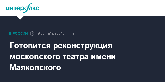 "Правительство Москвы приняло предложение комплекса социальной сферы столицы о проектировании, реставрации, реконструкции комплекса зданий Московского академического театра им. Владимира Маяковского по адресам ул.Большая Никитская, дом 19/13, стр.1, Малый Кисловский переулок, вл.11, стр.1 и 3 в 2010-2014 годах", - сказал собеседник агентства.