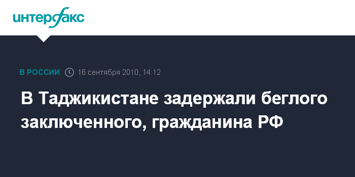 В Таджикистане задержали беглого заключенного, гражданина РФ