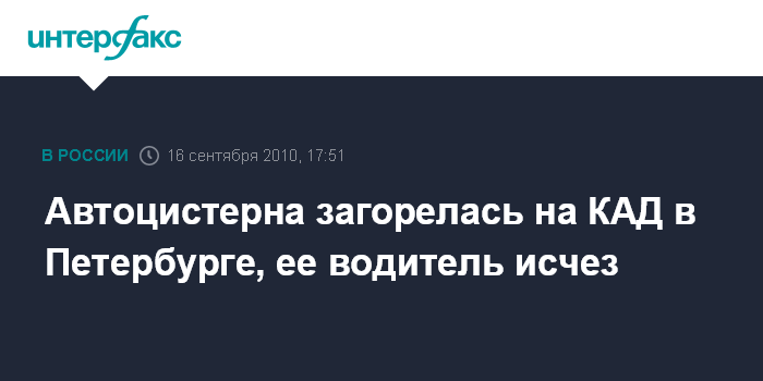 Санкт-Петербург. 16 сентября. INTERFAX.RU - На юге Петербурга в четверг вечером загорелась автоцистерна, сообщил "Интерфаксу" источник в правоохранительных органах.