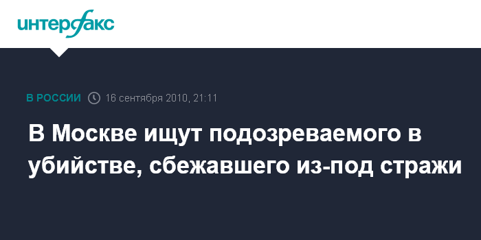 Москва. 16 сентября. INTERFAX.RU - Подозреваемый в убийстве сбежал из-под стражи вечером в четверг в Москве, сообщил "Интерфаксу" источник в правоохранительных органах.
