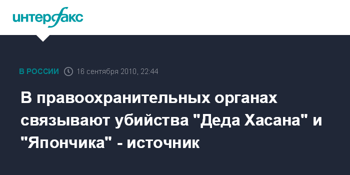 В правоохранительных органах связывают убийства "Деда Хасана" и "Япончика" - источник