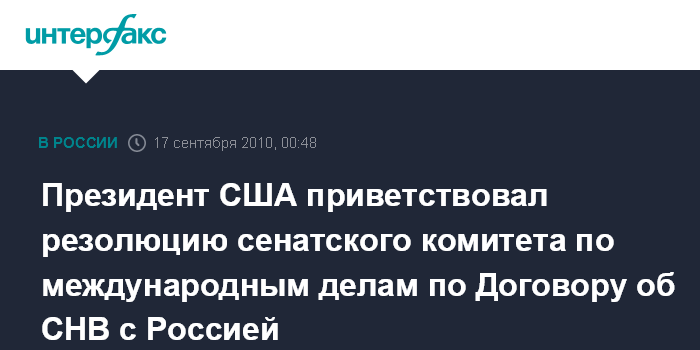 Президент США приветствовал резолюцию сенатского комитета по международным делам по Договору об СНВ с Россией