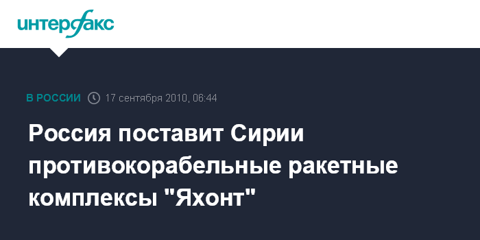 Россия поставит Сирии противокорабельные ракетные комплексы "Яхонт"