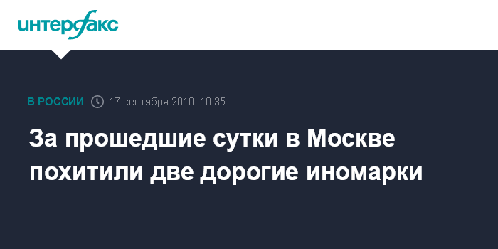 17 сентября. INTERFAX.RU - За прошедшие сутки на территории столицы были похищены две дорогие иномарки, сообщил "Интерфаксу" источник в правоохранительных органах города.