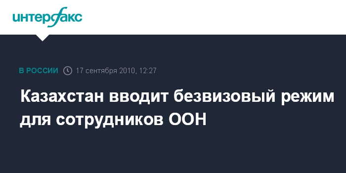 Астана. 17 сентября. INTERFAX.RU - Владельцы паспортов ООН будут освобождены от визовых требований при въезде на территорию Казахстана.