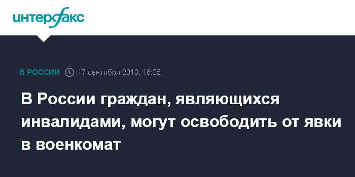 В России граждан, являющихся инвалидами, могут освободить от явки в военкомат
