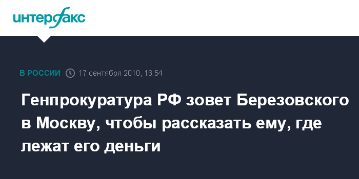 Генпрокуратура РФ зовет Березовского в Москву, чтобы рассказать ему, где лежат его деньги
