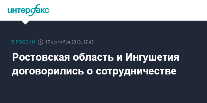 Сочи. 17 сентября. INTERFAX.RU - Губернатор Ростовской области Василий Голубев и глава Ингушетии Юнус-Бек Евкуров в ходе IX международного инвестиционного форума "Сочи-2010" подписали соглашение о сотрудничестве двух регионов.