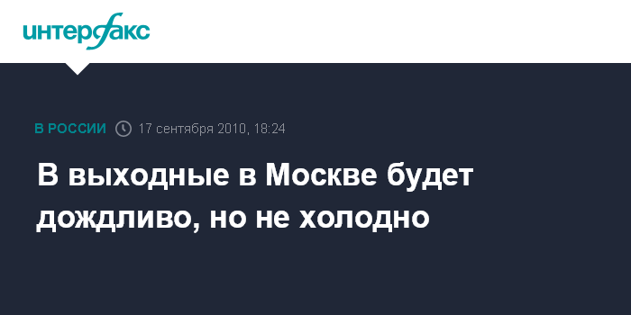 Москва. 17 сентября. INTERFAX.RU - Умеренно теплая погода ожидается в Московском регионе и соседних областях в ближайшие дни, но выходные будут дождливыми, прогнозируют метеорологи.