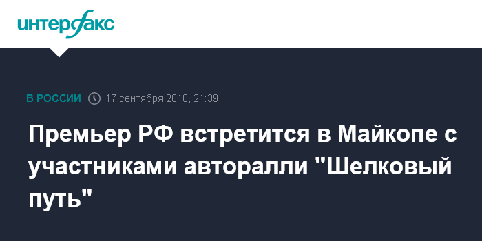 Премьер РФ встретится в Майкопе с участниками авторалли "Шелковый путь"